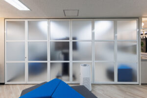 間仕切り工事事例|ポリカーボネートのスモークパネルのスライディングウォール