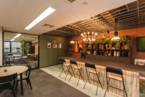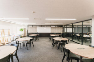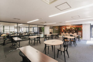 コミュニケーションを誘発するセミナールームとカフェスペース