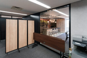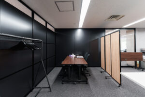 パーティション施工事例|ブラックパーティションが創る、洗練されたモダンオフィス空間