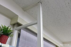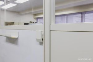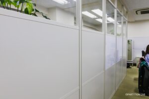 施工種 | エントランス、執務エリア、応接室(アルミフレーム(シルキー)+透明ガラス3㎜+ホワイトボードフィルム) |